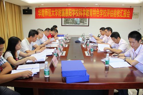 6月28日下午,惠州市惠阳区科学教育特色学校评估组到华南师范大学附属惠阳学校进行评估验收。惠州市惠阳区科协主席林庆财等出席评估会并作总结讲话。